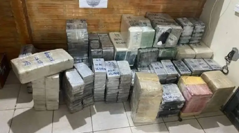 Os agentes afirmam que foram encontrados mais de 528 quilos de cocaína e 93 quilos de pasta base do entorpecente. Com a base diluída, é possível chegar a quase uma tonelada de cocaína depois de refinada, segundo a corporação.