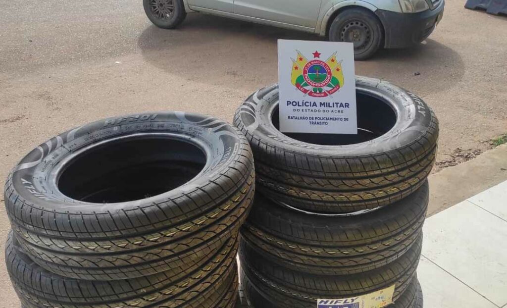 Uma Equipe do Batalhão de Policiamento de Trânsito (BPTRAN) apreendeu na tarde desta quarta-feira, 5, pneus de origem boliviana e prendeu um foragido da justiça. Os fatos ocorreram no Trevo de Senador Guiomard e na Via Chico Mendes, respectivamente.