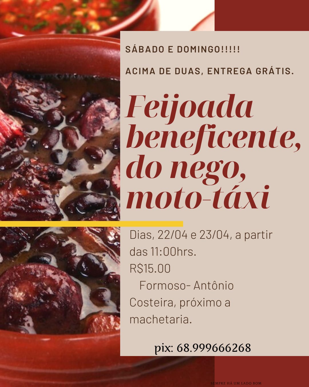 Para ajudar no custeio do tratamento e da viagem, a família resolveu fazer uma feijoada beneficente. A venda acontecerá neste sábado (22) e domingo (23), a partir das 11h no bairro Formoso, próximo a Marchetaria, em Cruzeiro do Sul.