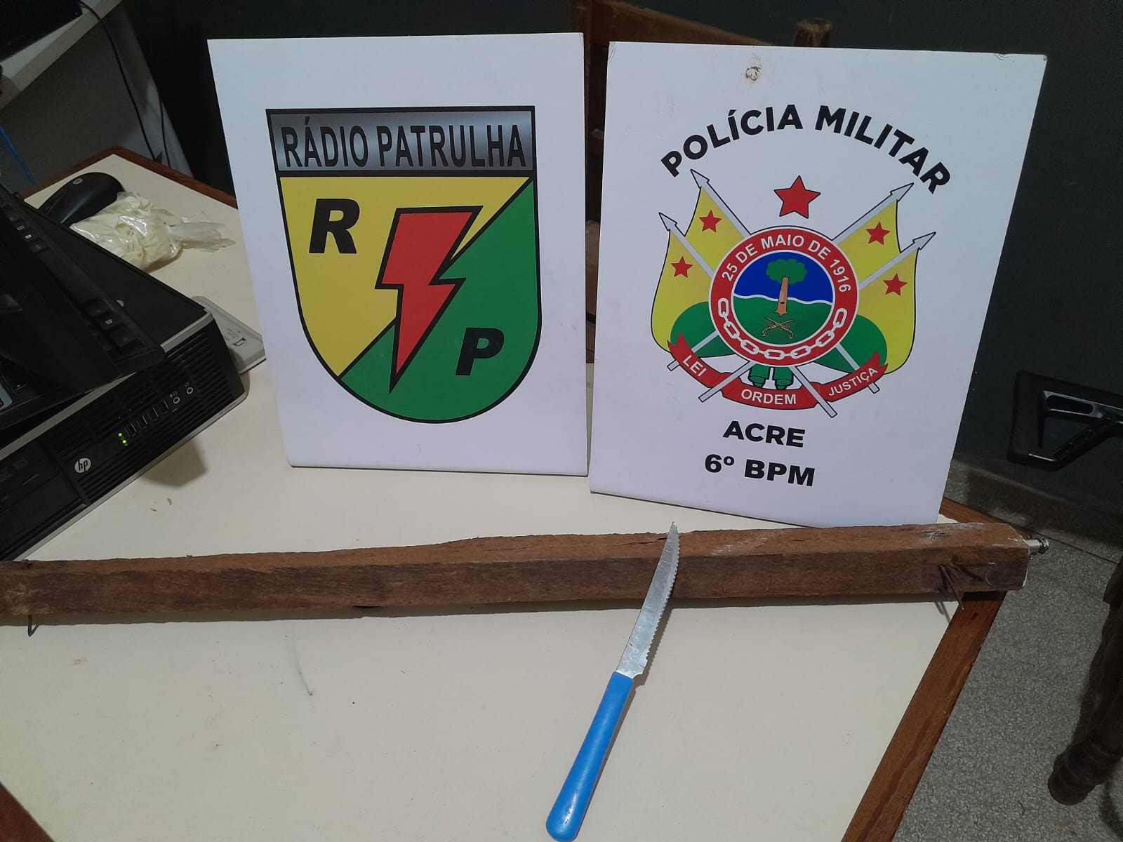 Na noite desta terça-feira (25), a guarnição de Radiopatrulha em serviço na Operação Visibilidade, abordava uma motocicleta a fim de passar orientações de trânsito, quando avistou um indivíduo em situação de rua, o senhor A. L. F., transitando em meio à pista de rolamento em posse um artefato de madeira com pregos em suas extremidades.