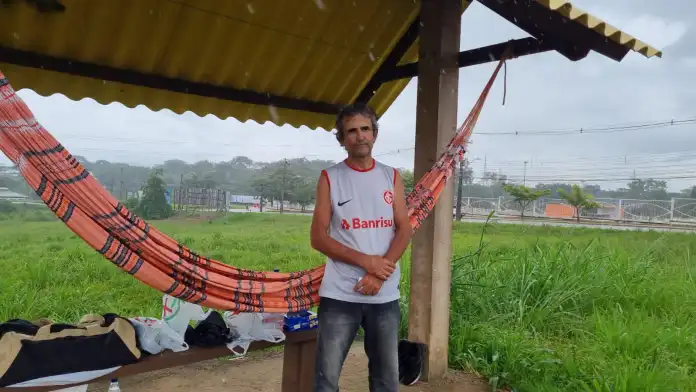 Paulo Renato Correia, natural de Porto Alegre, tem morado em uma parada de ônibus, em um dos bairros mais nobres, na região do Portal da Amazônia, em Rio Branco (AC). Após ser impedido de permanecer na parada próximo a Havan, o homem encontrou refúgio nas proximidades de um condomínio situado no Portal da Amazônia.