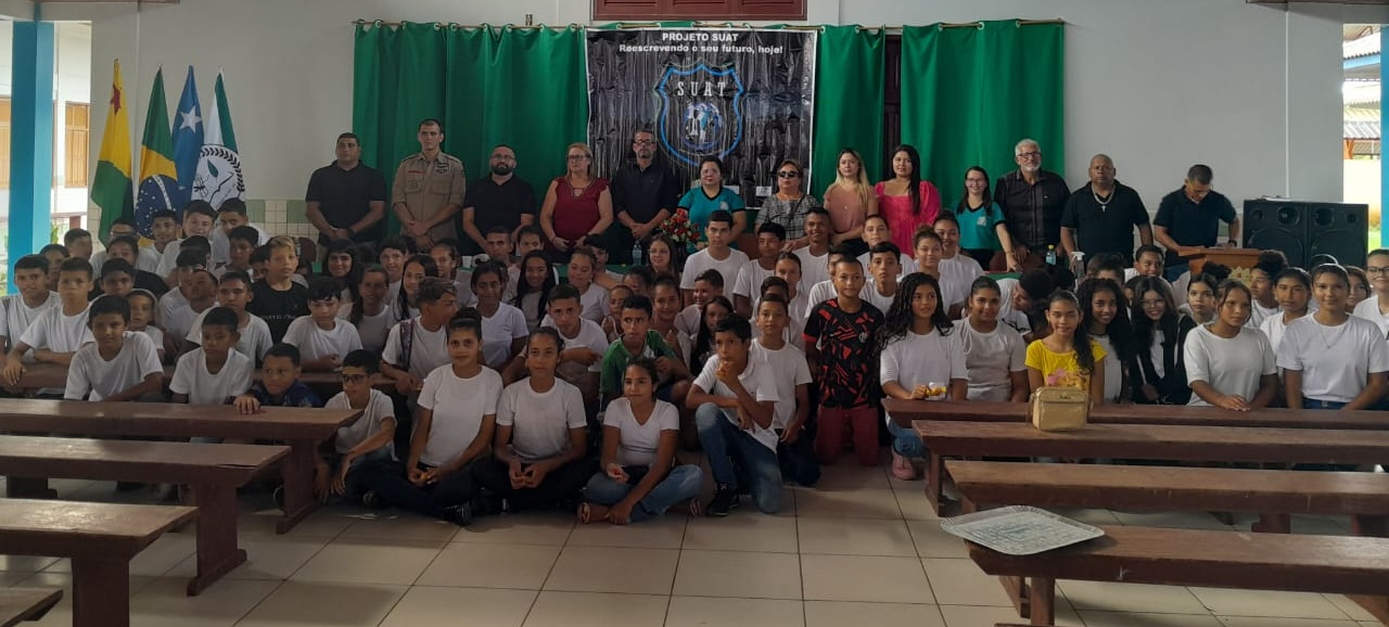 Nesta segunda-feira (03) foi realizado a segunda edição do Projeto SUAT (Seja um Adolescente de Triunfo) em parceria com o Governo do Estado do Acre, na escola Maria Lima, bairro Cobal. O projeto possui o principal objetivo de reunir jovens e adolescentes em situação de vulnerabilidade social a desenvolverem habilidades educativas, físicas e sociais.