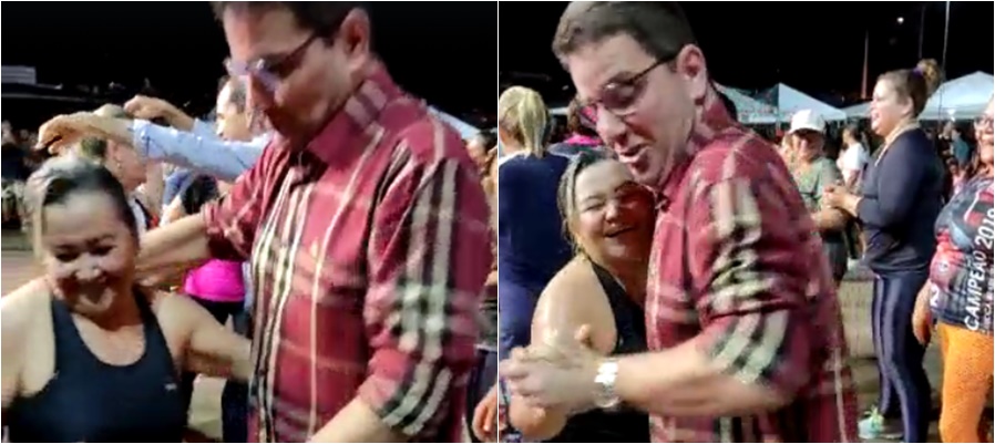 Cameli ‘arrastou’ um forró, acompanhado de uma senhora, mostrando que está em boa forma. Ao fundo, é possível perceber que o prefeito Zequinha Lima, também entrou no ritmo e não ficou de fora da alegria. Assista: