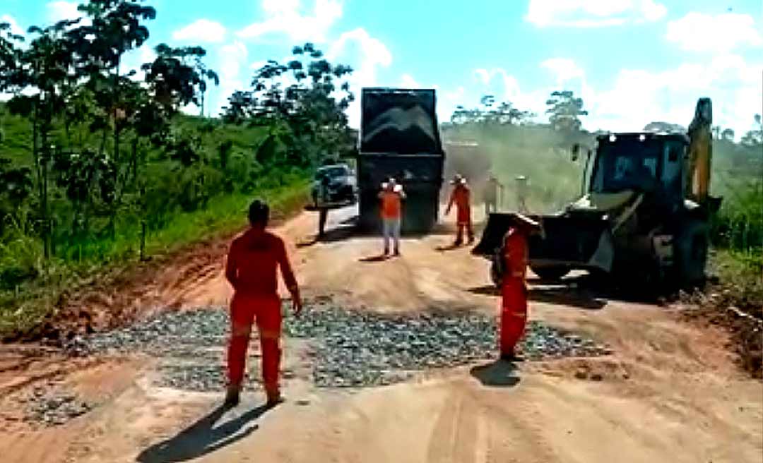 “Depois de tanta reclamação, de tantos vídeos enviados nas redes sociais sobre a situação do trecho, o DNIT resolveu tapar o buraco, um deles, próximo ao Rio Jurupari, Graças a Deus!”, comemora o caminhoneiro, que seguia para Cruzeiro do Sul.