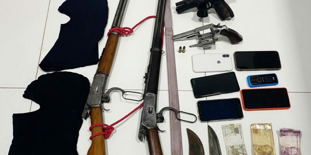 Uma guarnição da Polícia Militar do Acre (PMAC) interceptou um táxi, em Plácido de Castro, que transportava três assaltantes, na noite desta sexta-feira, 19. Dois homens foram presos, ambos armados, e duas armas longas e diversos objetos que haviam sido roubados de uma família em Acrelândia foram apreendidos.