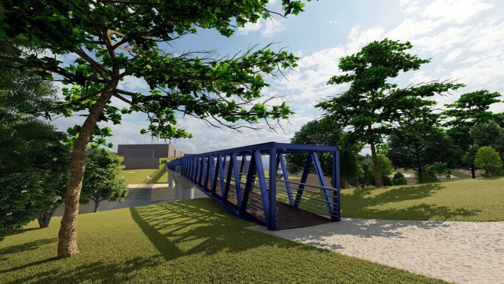 Imagem virtual da passarela sobre o Rio Amônia, em Marechal Thaumaturgo. Foto: Ascom/Deracre