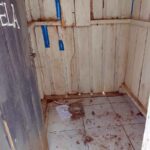 A estrutura é precária. O banheiro não oferece qualquer condição de uso. A fossa no quintal da escola é coberta com tábuas podres, o que põe em risco a vida dos alunos.