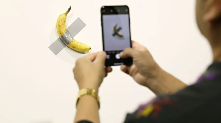 Intitulada “Comedian” (Comediante, em português), a obra se tornou um dos maiores momentos virais do mundo da arte ao ser vendida por US$ 120 mil na Art Basel Miami Beach, em dezembro de 2019. Duas outras edições da peça também foram vendidas na feira.