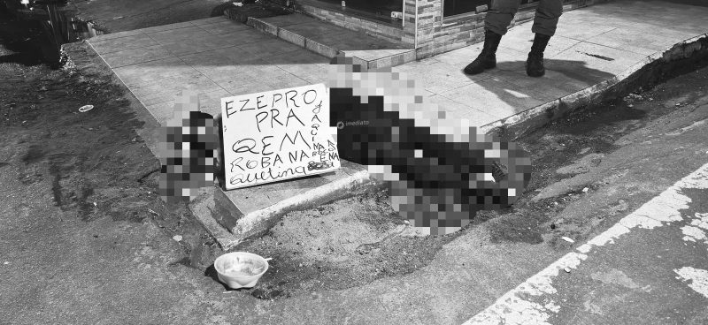 O corpo do homem foi encontrado no local já sem vida, com uma placa em cima contendo uma frase que dizia: “exemplo pra quem rouba na Quintino e na Joaquim Nabuco”.
