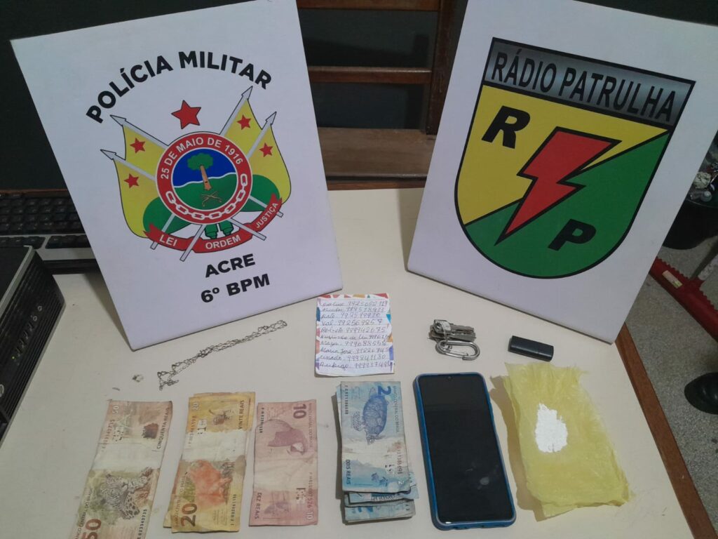 A guarnição de Radiopatrulha 01 da Polícia Militar estava em patrulhamento na região do cais de Cruzeiro do Sul, quando foi informada de que um indivíduo estaria comercializando drogas no loca.