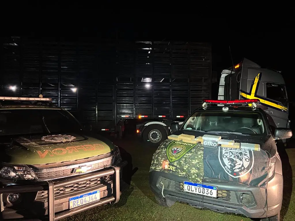 Com o condutor do veículo apresentando nervosismo com a aproximação da polícia, foi solicitado o desligamento do caminhão e que a segunda pessoa, do sexo feminino descesse para que desse inicio a revista na parte interna do boiadeiro, que na ocasião estava carregado com 110 cabeças de gado oriundos do município de Epitaciolândia, onde seria descarregado em Senador Guiomard, que em uma outra versão, o motorista afirmou que teria destino São Paulo.
