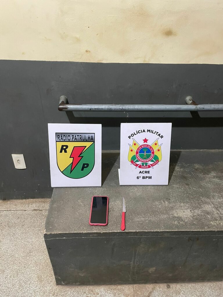As vítimas informaram aos policiais a direção em que os criminosos seguiram e, após a ronda, os agentes foram encontrados. Durante a busca pessoal foi encontrado um celular roubado e uma arma branca.