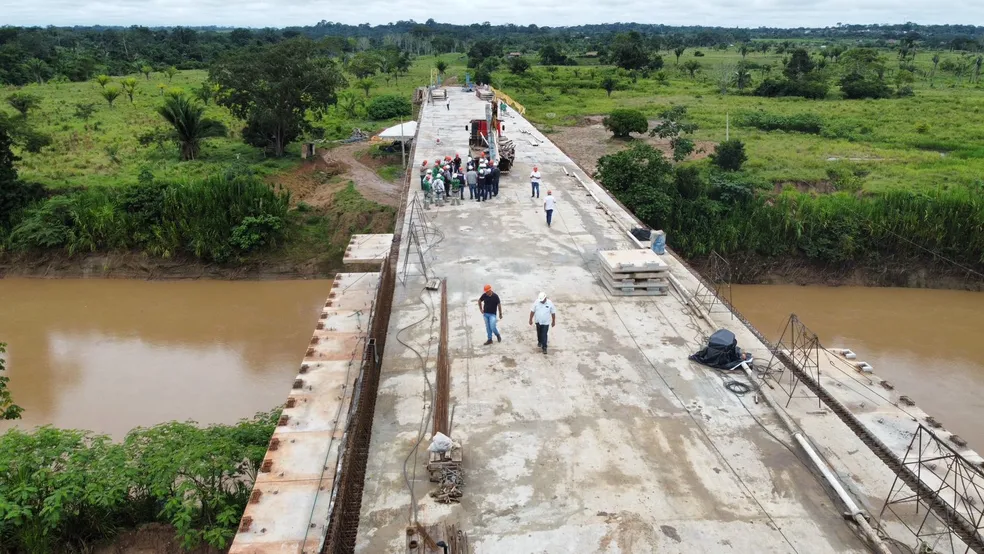 O prazo inicial para conclusão era o fim de 2022. Depois, a previsão passou a ser janeiro de 2023. Em fevereiro, segundo o governo, o anel viário estava 90% construído. A última atualização do governo do Acre, em março deste ano, informou que a obra estava em fase final, e a aduela de fechamento central, que liga os dois lados da estrutura da ponte, foi instalada.