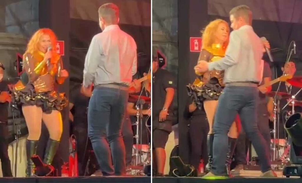 Durante sua apresentação na Festa do Trabalhador desta segunda-feira (01) em Rio Branco, a cantora Joelma convidou o governador do Acre, Gladson Cameli para dançar com ela no palco.