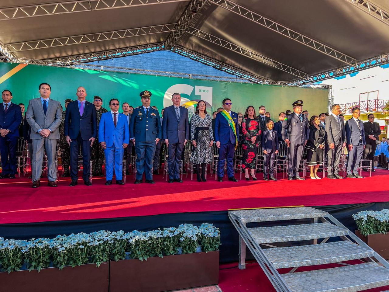 Ao lado do governador Gladson Cameli, e do primeiro-secretário da Aleac, Nicolau Júnior, e demais autoridades, Gonzaga acompanhou os desfiles cívicos e festejos que fazem parte da programação organizada pelo governo do Estado.