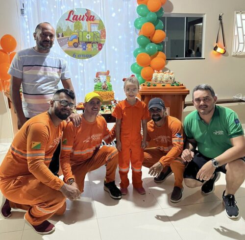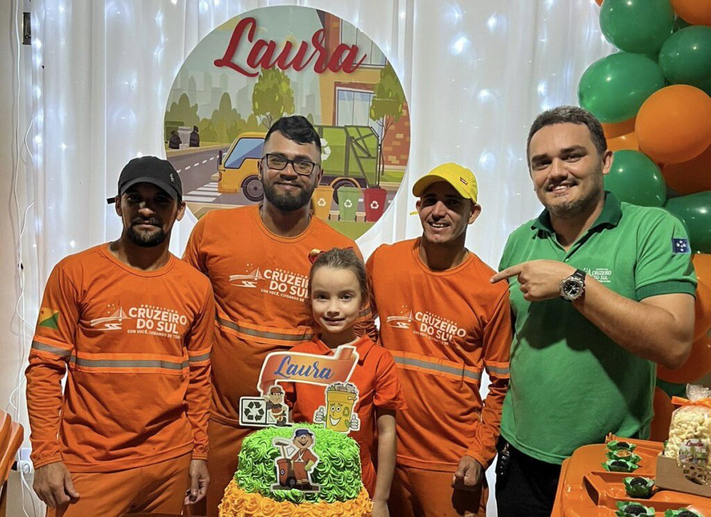 Ao invés de princesas ou outros personagens infantis, a menina escolheu o tema da festa por ser fã dos garis, profissionais que fazem a coleta de lixo. Além disso, uma equipe de coletares chegaram de surpresa na festa de aniversário da Laura.