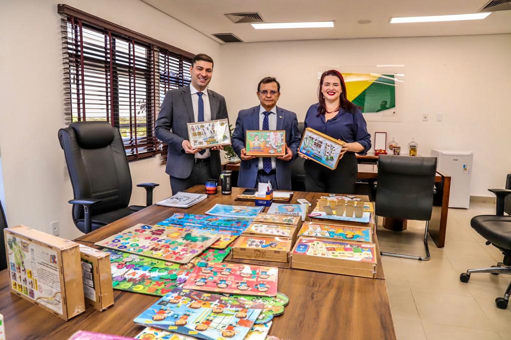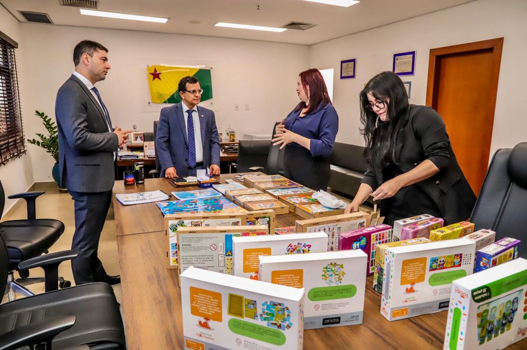 O presidente da Assembleia Legislativa do Acre (Aleac), Luiz Gonzaga (PSDB), e o primeiro-secretário da Casa, Nicolau Júnior (PP), receberam nesta terça-feira (20) a visita da professora de Rio Branco, Nelinha Soares, que apresentou aos parlamentares materiais escolares em Língua Brasileira de Sinais (Libras) e jogos voltados para educação de crianças com autismo, surdos e deficientes visuais.