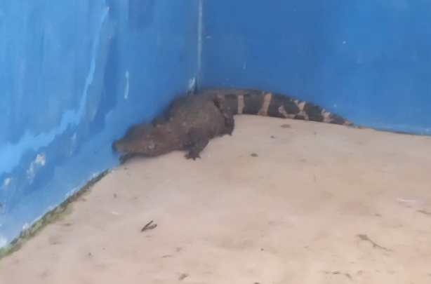 Um jacaré foi encontrado embaixo das arquibancadas do Estádio Marreirão, no município de Sena Madureira, nesta quarta-feira, 21.