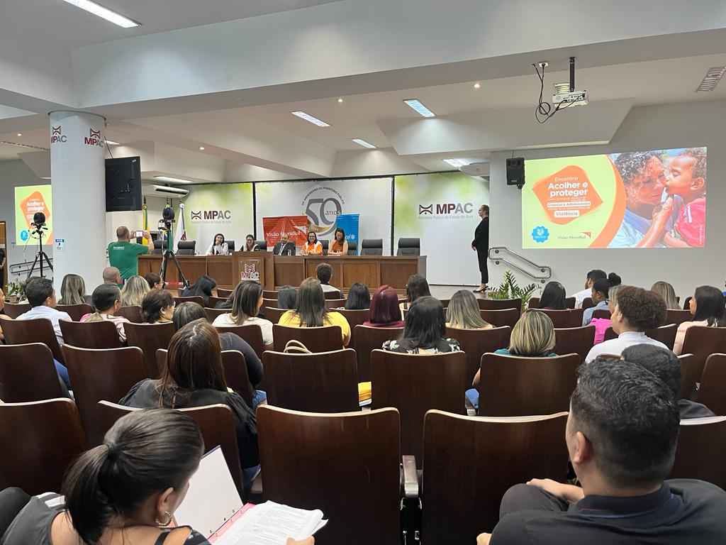 A capacitação acontece das 8h às 17h, no Ministério Público do Estado do Acre, localizado na rua Marechal Deodoro, nº 472, bairro Centro, reunindo cerca de 60 profissionais, entre representantes do Conselho Municipal de Direitos de Crianças e Adolescentes (CMDCA), das secretarias municipais de assistência social e o articulador do Selo UNICEF nos municípios.