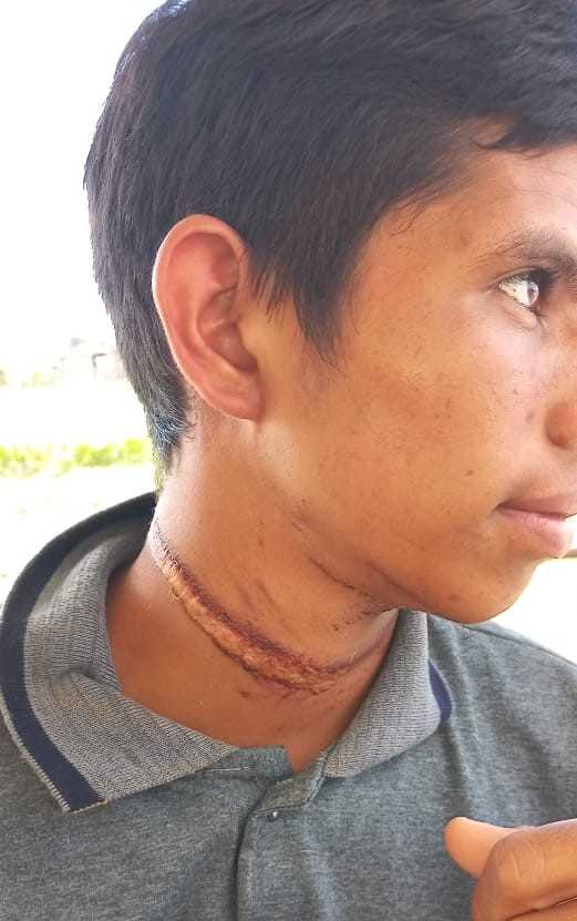 Por meio da imagem, é possível observar com clareza a marca do acidente em seu pescoço.