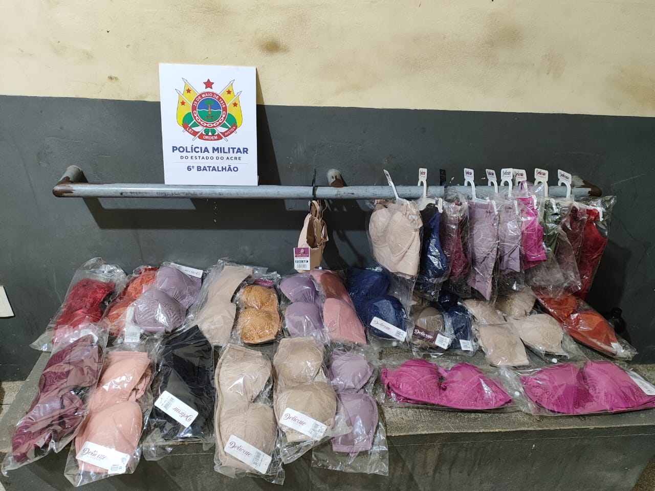A mulher portava um saco com 31 conjuntos de peças íntimas, ainda na embalagem.