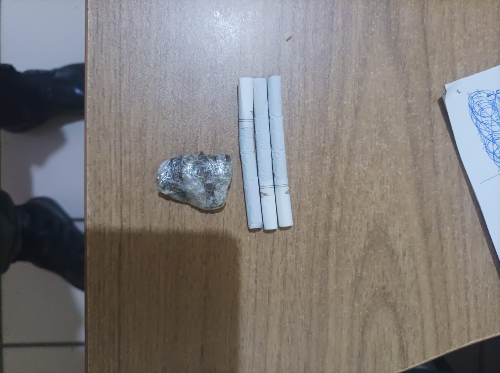 Dessa maneira, o senhor A.I.L.A., de 34 anos, foi encontrado na casa da vítima em posse de 3 cigarros e de um papelote com uma substância aparentando ser entorpecente.