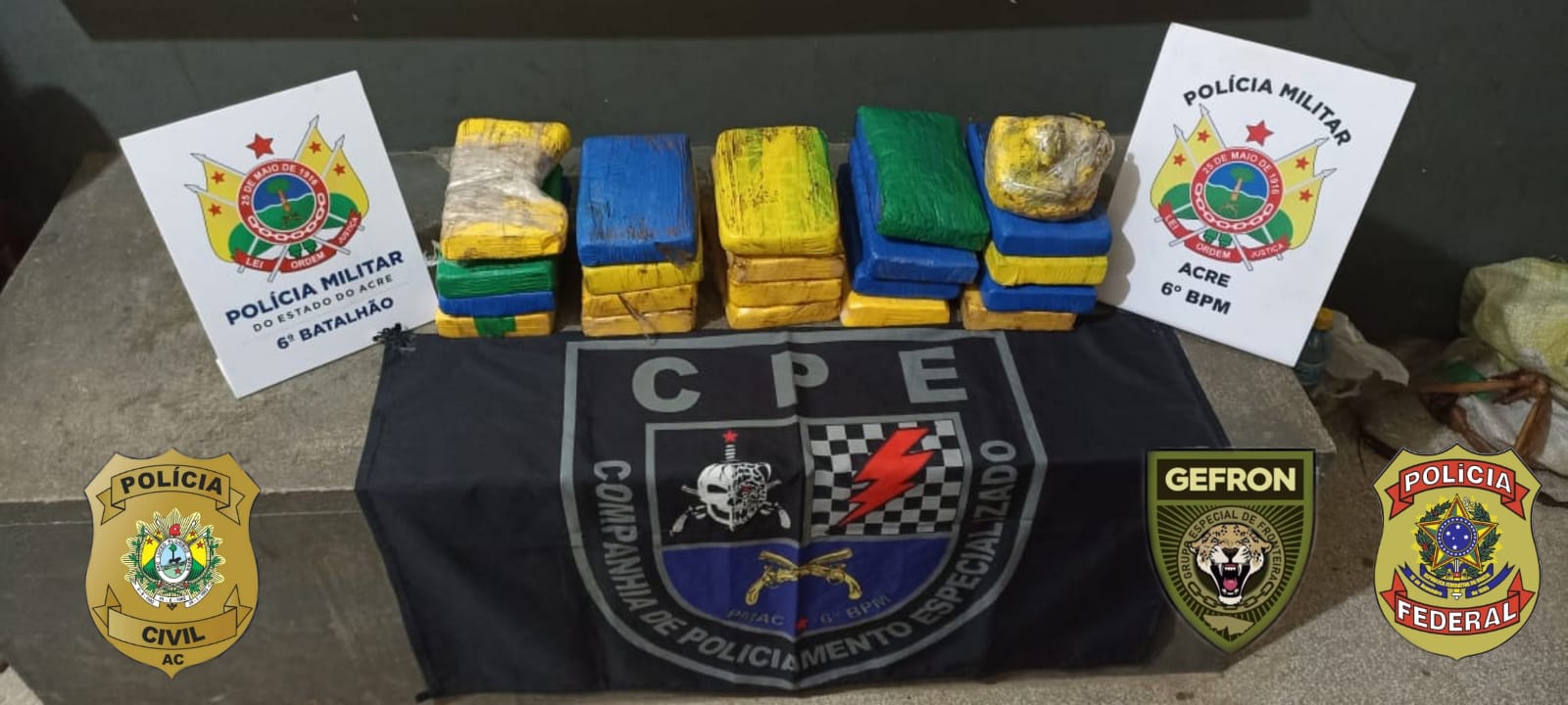 Durante a madrugada desta quarta-feira (19), por volta das 03h40min, realizou-se uma ação integrada entre a Polícia Militar (CPE/6°BPM), Polícia Civil (DENARC-CZS), Polícia Federal e GEFRON, na zona rural do município de Mâncio Lima, no qual foi apreendido vinte e um quilos de entorpecentes.