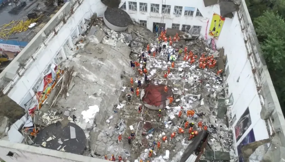 Os materiais eram da obra do prédio ao lado, mas, com a chuva dos últimos dias na cidade de Qiqihar, ficaram encharcados e aumentaram de peso. Ao todo, 19 pessoas estavam presentes no ginásio quando houve o desabamento.
