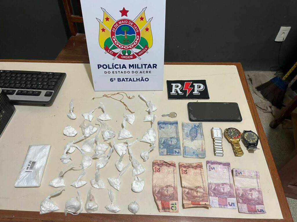 Com a chegada da guarnição, observou-se sinais de luta corporal, vaso sanitário, copos e vários outros objetos quebrados no quarto em que o casal estava presente, além de 31 embalagens de substância entorpecente.