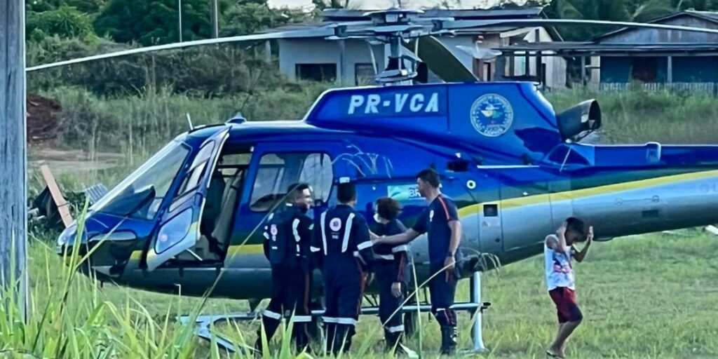 O helicóptero do Ciopaer foi acionado para realizar o resgate aéreo. Felizmente, o voo não foi necessário, pois a criança acordou ainda na unidade de saúde.