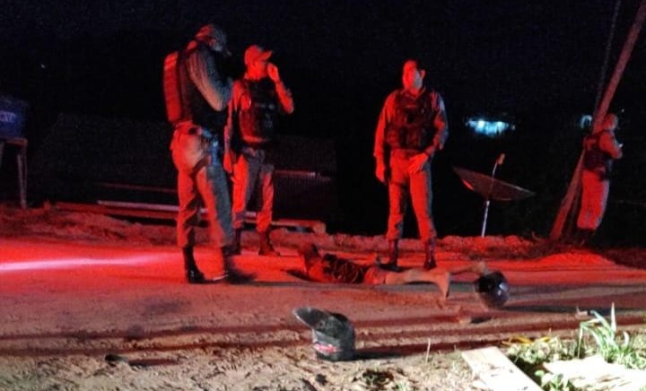 Durante a perseguição, o criminoso entrou em uma rua sem asfalto no bairro Oscar Trovão, perdendo o controle e caindo. Logo, os dois indivíduos foram imobilizados, onde foi encontrado uma balaclava, duas barras que aparentava ser maconha, uma trouxinha de merla e substâncias similares a skank.