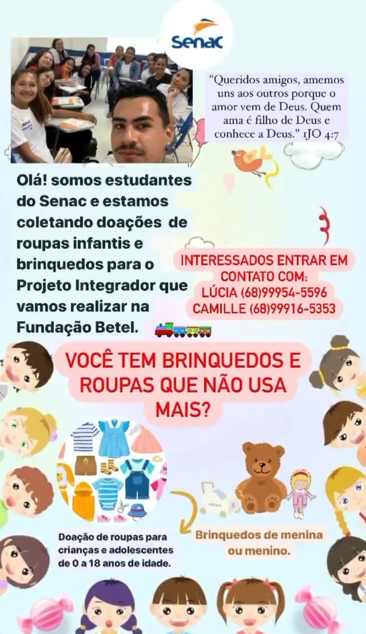 Portanto, quem se interessar em ajudar, o ponto de coleta é na recepção do SENAC.