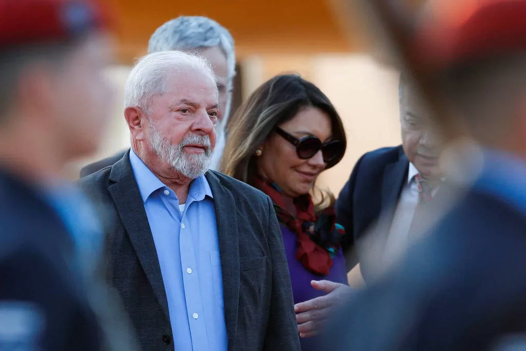 O presidente Lula (PT) e sua esposa, a primeira-dama Rosângela da Silva, a Janja, na chegada da posse do presidente paraguaio, em Luque – Cesar Olmedo – 14.ago.23/Reuters