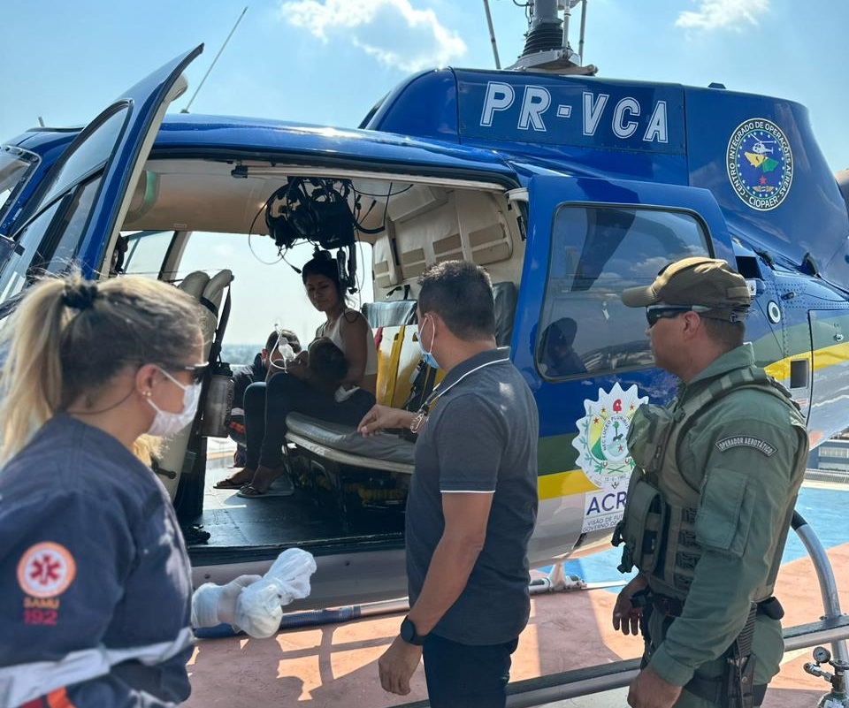 A aeronave transportou a família até o heliporto do Pronto-Socorro de Rio Branco, onde a criança se encontra internada. Segundo a unidade de saúde, o bebê estava desacordado quando a equipe médica chegou até a reserva para os primeiros socorros.