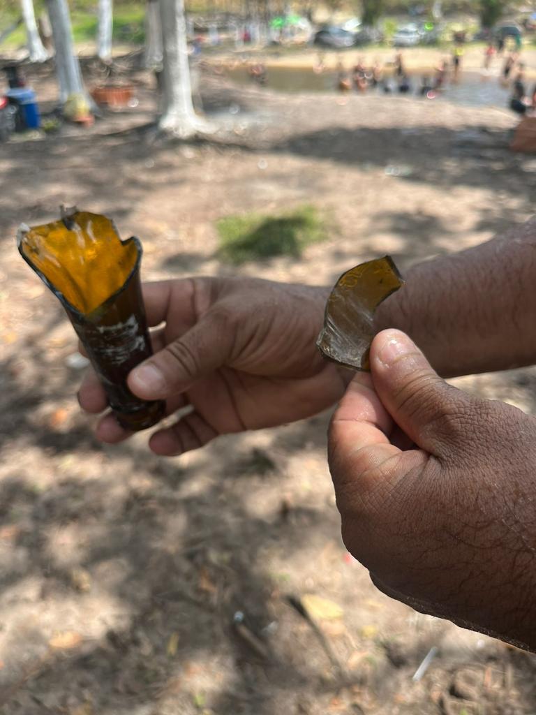 Os visitantes encontram lixos deixados por outras pessoas, tornando o ambiente desagradável e até perigoso. Garrafas de bebidas são quebradas e deixadas nos locais usados pelos banhistas. Neste domingo (06), foram registrados dois casos de pessoas que saíram do lugar com cortes nos pés, ocasionados por garrafas quebradas.