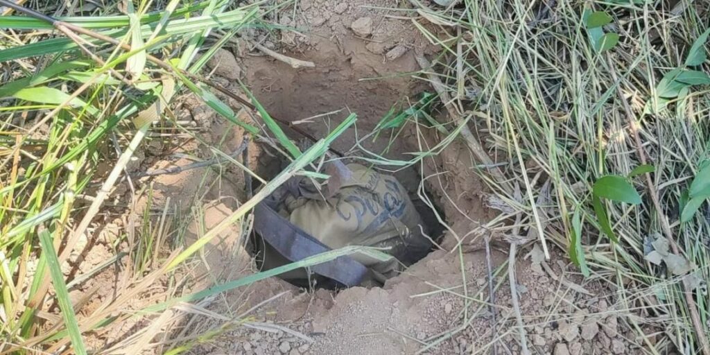 Em conversa com os militares, o homem apontou onde estava o restante da droga, que estaria enterrada na região de mata, sendo necessário a guarnição cavar um buraco no local em que se encontrava a droga.