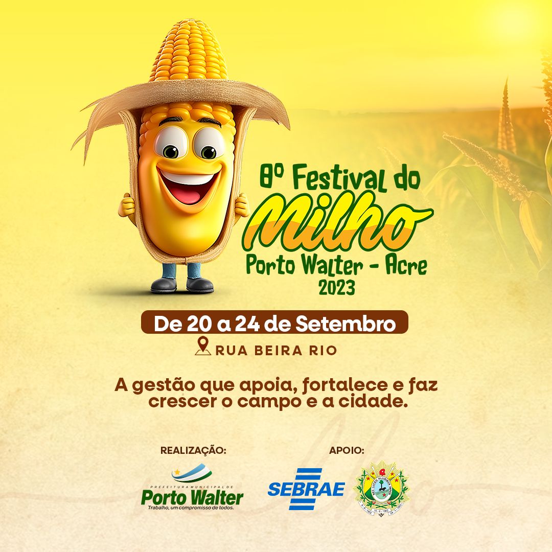 Nesta Terça-feira (22), a Prefeitura de Porto Walter iniciou a divulgação oficial da programação das ações que irão celebrar o 8º Festival do Milho, a maior feira de comercialização de derivados do milho do Acre. Durante quatro noites, a Rua Beira Rio e a Concha Acústica, na Praça Imaculada Conceição receberão a população da cidade e dos municípios vizinhos, desenvolvendo a economia local, apoiando o homem do campo com diversas oportunidades de negócios, atrelando cultura e entretenimento.