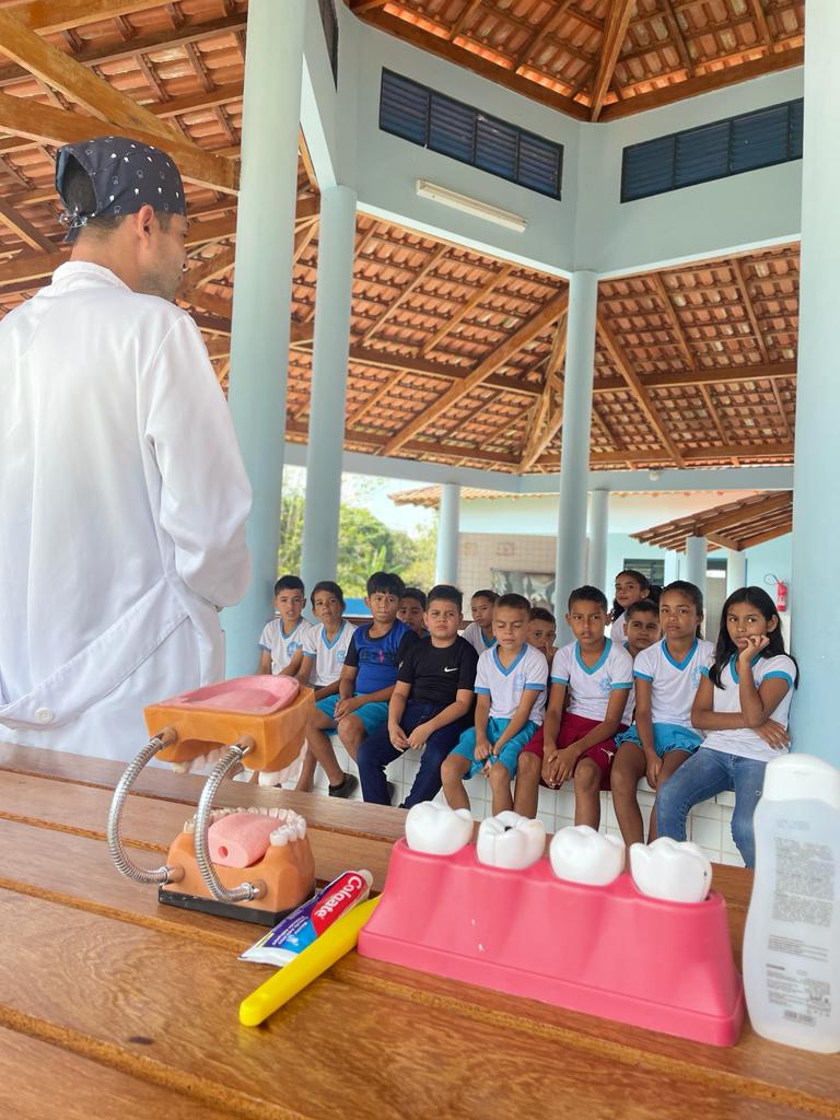 Na ação de encerramento, o Dr. Iderlandio Silva de Oliveira e as técnicas de saúde bucal Katiana Reis, Antônia Rosiane Veríssimo e Marinara realizaram uma palestra sobre a importância da higiene bucal, apresentando hábitos e atitudes relacionadas, a alunos de 3 a 5 anos, atendendo 131 discentes.