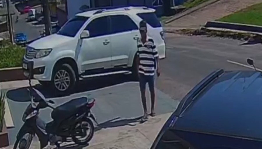 Nesta sexta-feira, 18, um ladrão foi flagrado roubando o capacete de uma motocicleta modelo Honda Biz, na região central de Cruzeiro do Sul.
