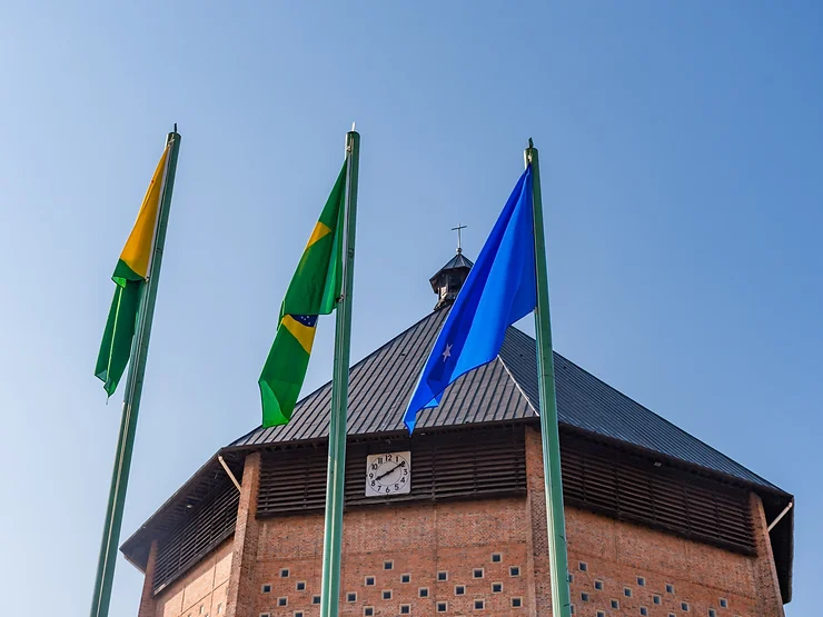 A bandeira de Cruzeiro do Sul foi hasteada pelo vice-prefeito Henrique Afonso representando o município neste momento em que o Prefeito Zequinha Lima se recupera de uma cirurgia.