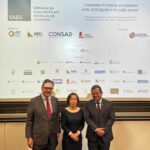 Gonzaga esteve acompanhado da diretora da Escola do Legislativo Acreano, Rachel Farias, no evento que aborda a cooperação internacional e promoção de ações para o desenvolvimento sustentável e educacional.