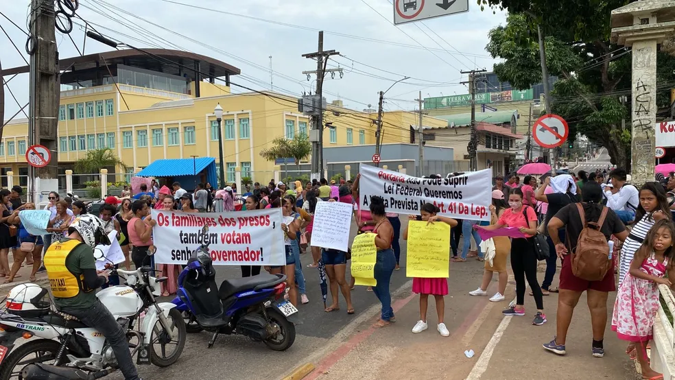 Cobrando melhorias no fornecimento de mantimentos e remédios aos detentos do Complexo Penitenciário de Rio Branco, familiares de presos fizeram, nesta segunda-feira (11), um protesto no Centro de Rio Branco.