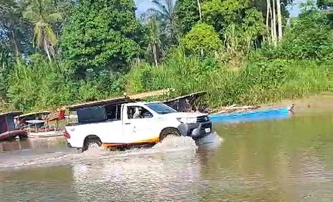 Um vídeo registrado por um cinegrafista amador mostra o momento em que uma caminhonete da Energisa atravessa o rio Tarauacá, situado no município do Jordão, no interior do Acre.