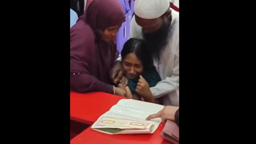 🇧🇩 | ¡INDIGNANTE! Es viral un video donde se aprecia a una menor de edad musulmana en Bangladesh dónde es obligada por su madre y su padre a firmar un contrato de boda, con un hombre de más de 40 años. pic.twitter.com/gL4Z6IbLmZ