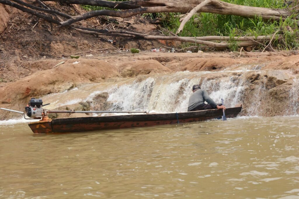 Os produtores estão tendo dificuldades de navegar. Para passar, eles precisam tirar a canoa da água com as mãos pelo barranco até passar a área de cachoeira. Mas, tem outro problema mais grave. Os peixes estão com dificuldades para subir o rio e fazer a desova. Muitos conseguem vencer a força da água, e a altura do sedimento, mas outros batem e voltam.