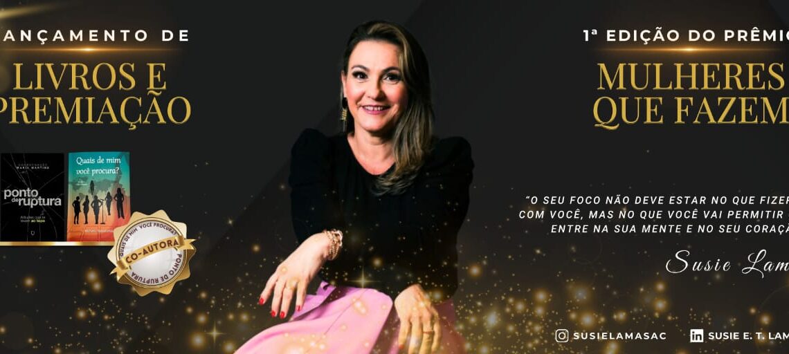 A primeira edição do prêmio “Mulheres que Fazem” será realizada nesta quinta-feira, 26, a partir das 17h, para convidados, no restaurante Paris Garden, e tem como destaque o lançamento dos livros “Ponto de Ruptura” e “Quais de Mim Você Procura”, ambos escritos com a coautoria da acreana Susie Lamas, e já lançados, no último mês de agosto, em São Paulo.
