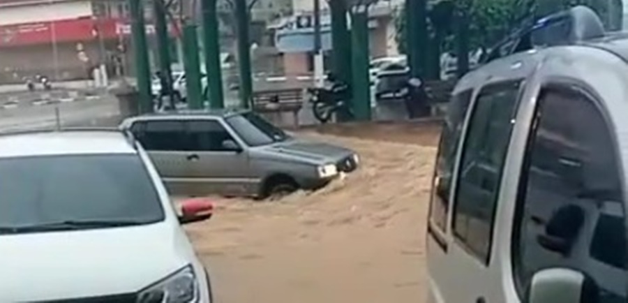 Uma chuva torrencial, que começou por volta das 14h desta quarta-feira, 25, em Cruzeiro do Sul, deixou várias ruas alagadas, especialmente no Centro da cidade.