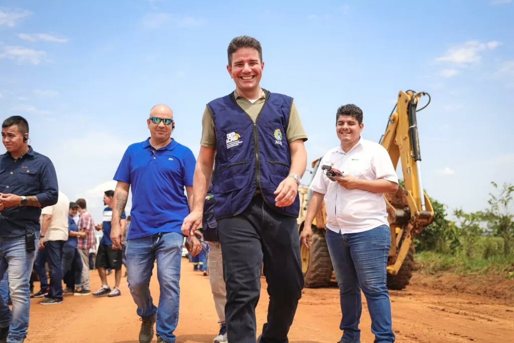 O governador Gladson Cameli deu início a um projeto ambicioso e de grande investimento para melhorar a infraestrutura viária com o lançamento das obras da rodovia AC-445, que liga os municípios de Bujari e Porto Acre, pela Vila do V. O evento aconteceu neste sábado, 30, no Km 20 do ramal Bujari, entre os dois municípios onde as obras já começaram, com homens e máquinas na pista.