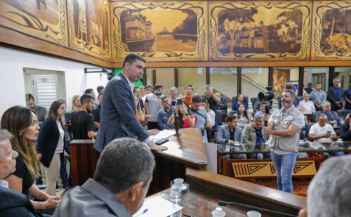 Primeiro secretário da ALEAC, Nicolau Júnior usou a tribuna para enaltecer o trabalho realizado pelas cooperativas, destacando responsabilidade e a capacidade organizacional. O Deputado enfatizou a criação da Frente Parlamentar de Apoio ao Cooperativismo instalada durante a sessão, pontuando a relevância econômica da atuação das cooperativas no estado.