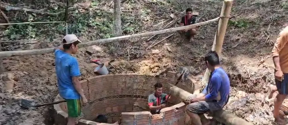 Por conta da seca, comunidade indígena do interior do AC recupera poço para armazenar água